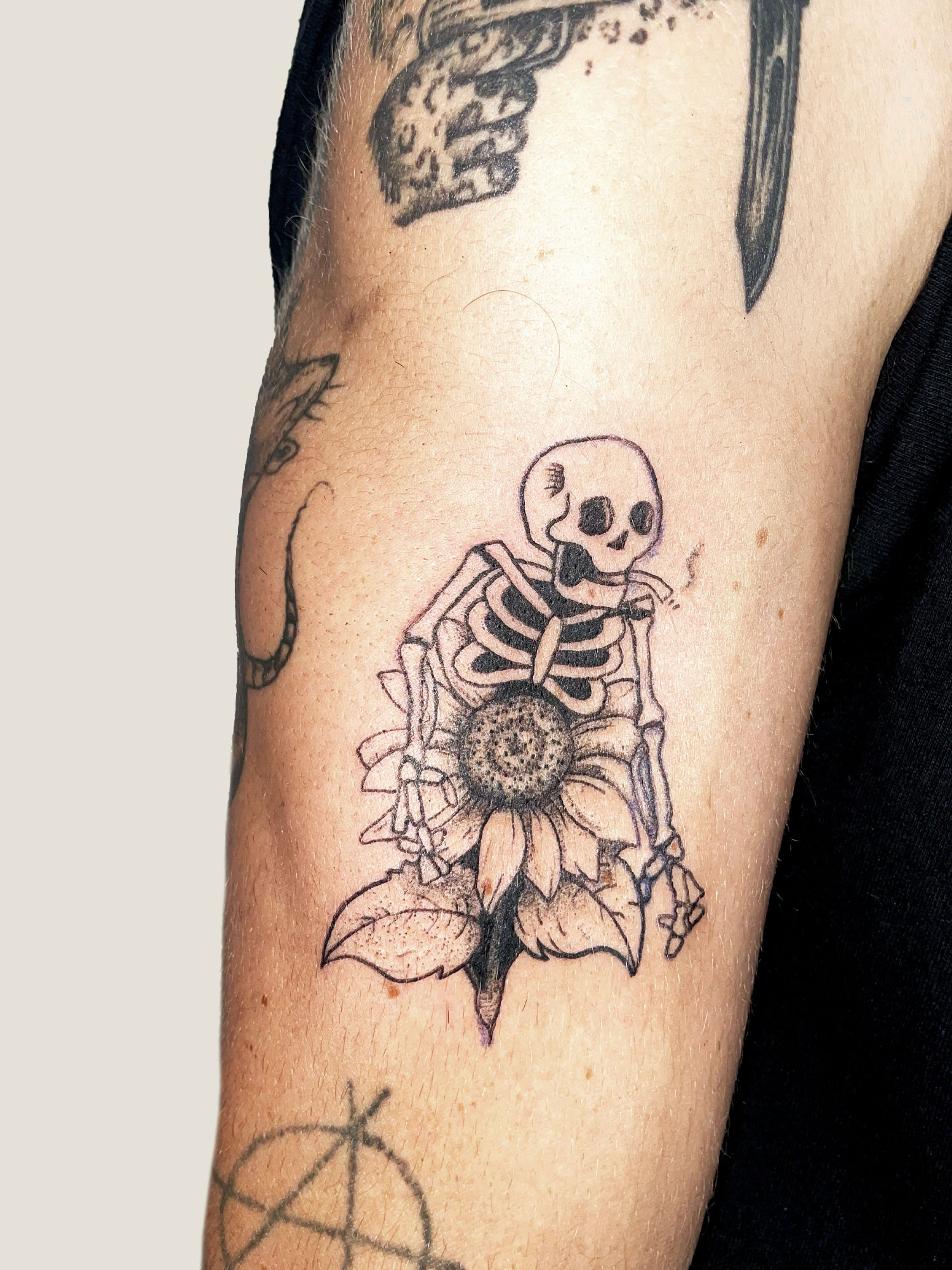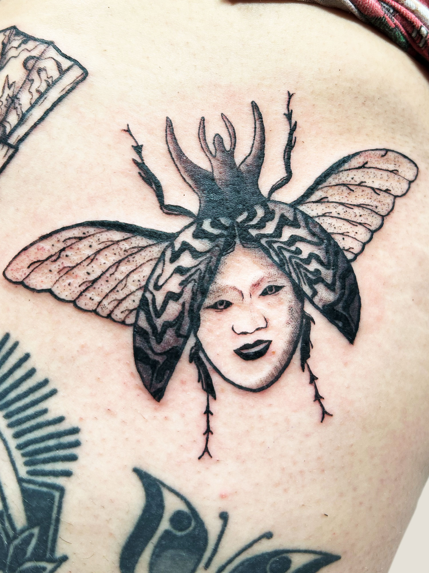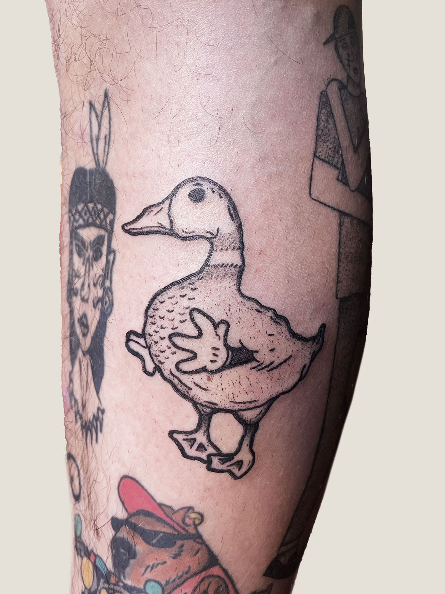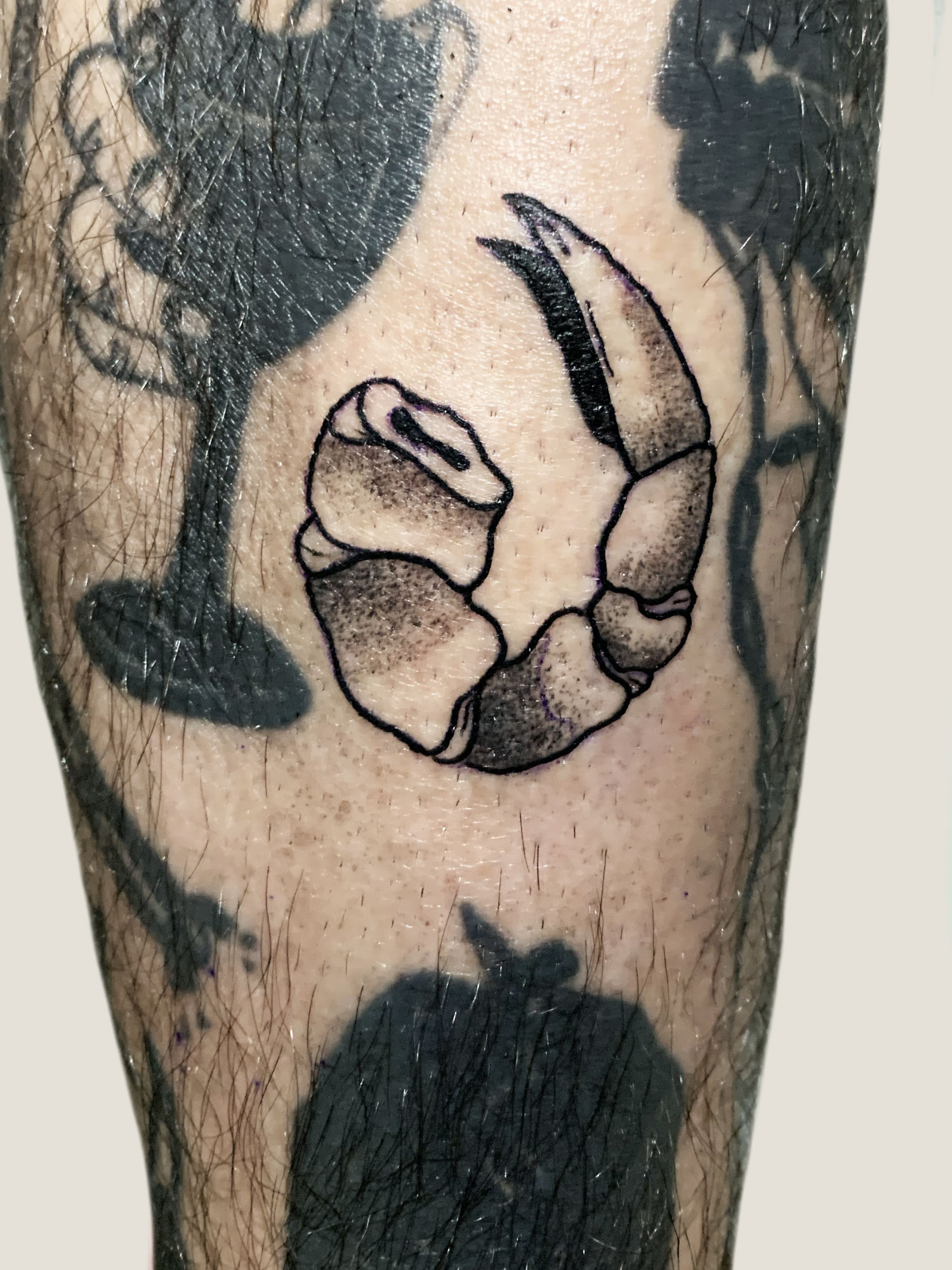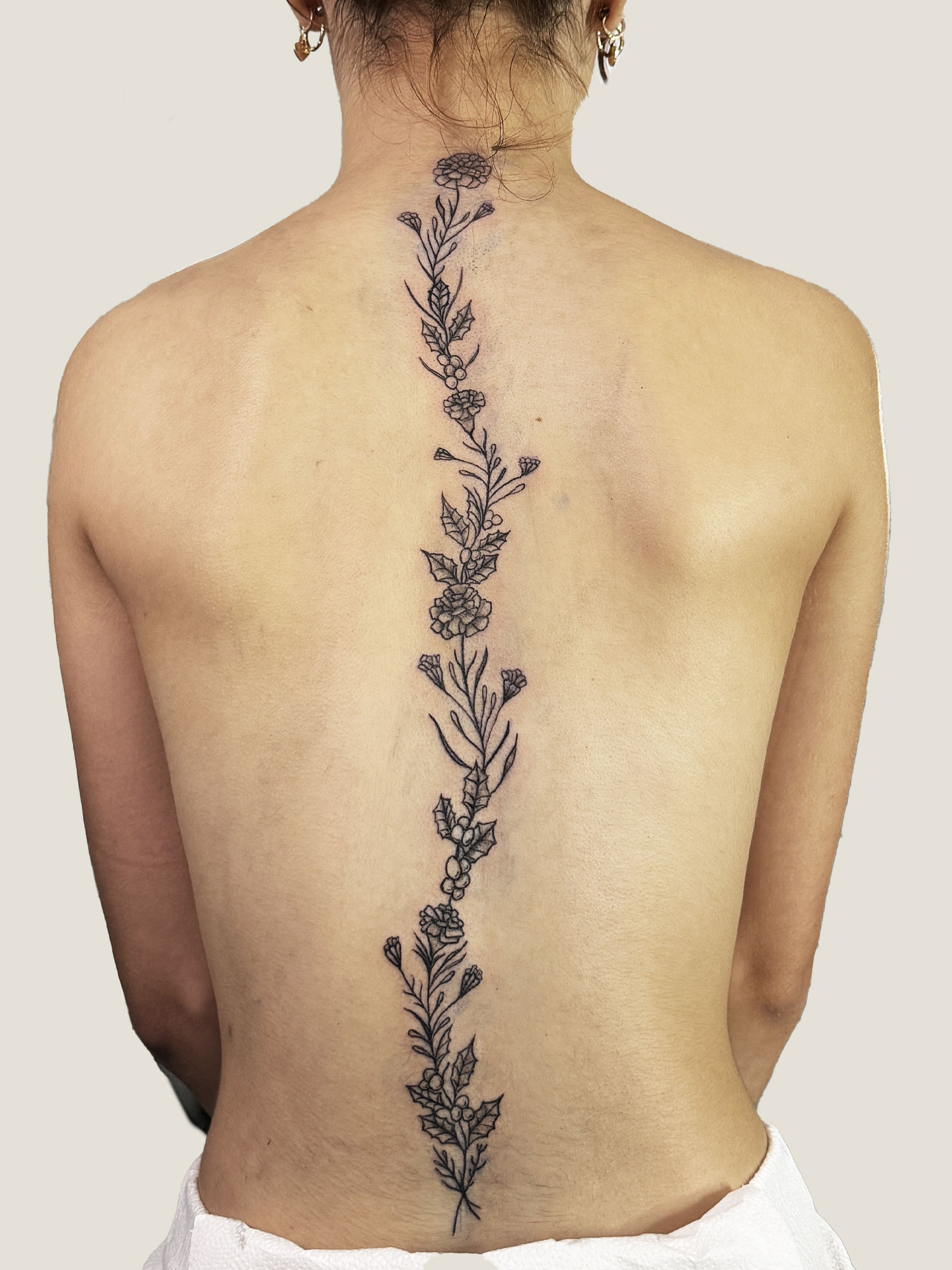 Soy Diego, tengo 26 años y hace 3 que Barcelona es mi casa. Tatuo en Coyote Spike Tattoo, donde mezclo el blackwork ilustrativo con detalles orgánicos y texturas inspiradas en el suminagashi — me gusta crear piezas únicas, con alma y movimiento.